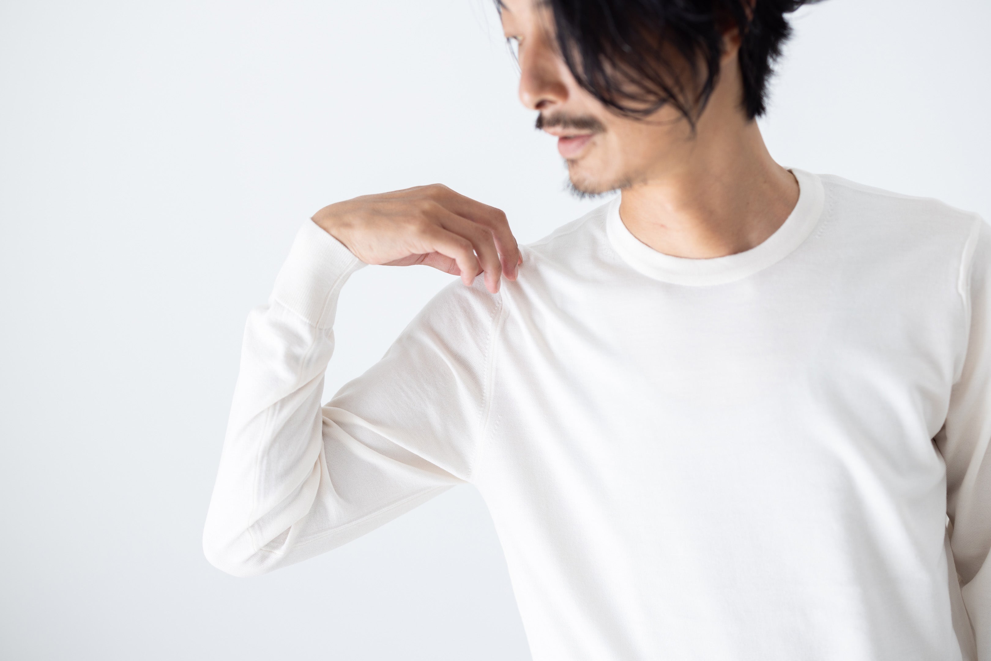 no+af 2025 SPRING/SUMMER COLLECTIONより、 春夏アイテムが入荷しました。 リピート率No.1 FF30はGIZAコットンを使用し、なめらかでしっとりと艶のある質感です。 暑い夏にもおすすめな薄手のニットは、ベーシックカラーに加え、さわやかな印象のダスティピンクやベージュの淡いカラーを展開。 軽量でハリのある質感のソロテックス®シリーズからも新型が登場しました。 比翼デザインのポロネックは定番アイテムながら、テクニックの詰まった一枚です。 ▶コレクションを見る