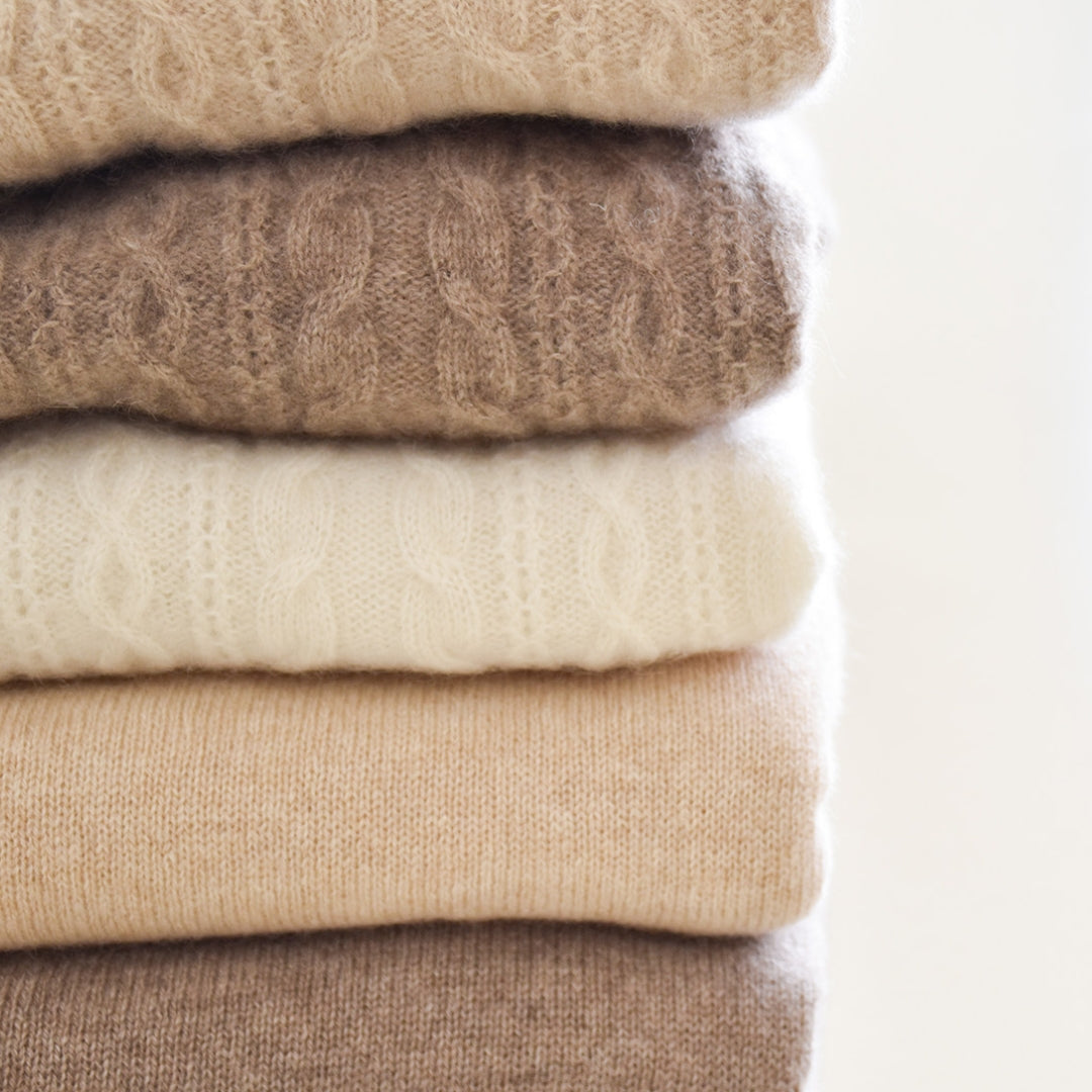 モンゴルの中でも特に寒暖の差が激しい地域で生息する1歳~3歳のカシミヤ山羊に限定。あたたかさ、やわらかさカシミヤ特有のしっとりした肌ざわりは格別なものです。