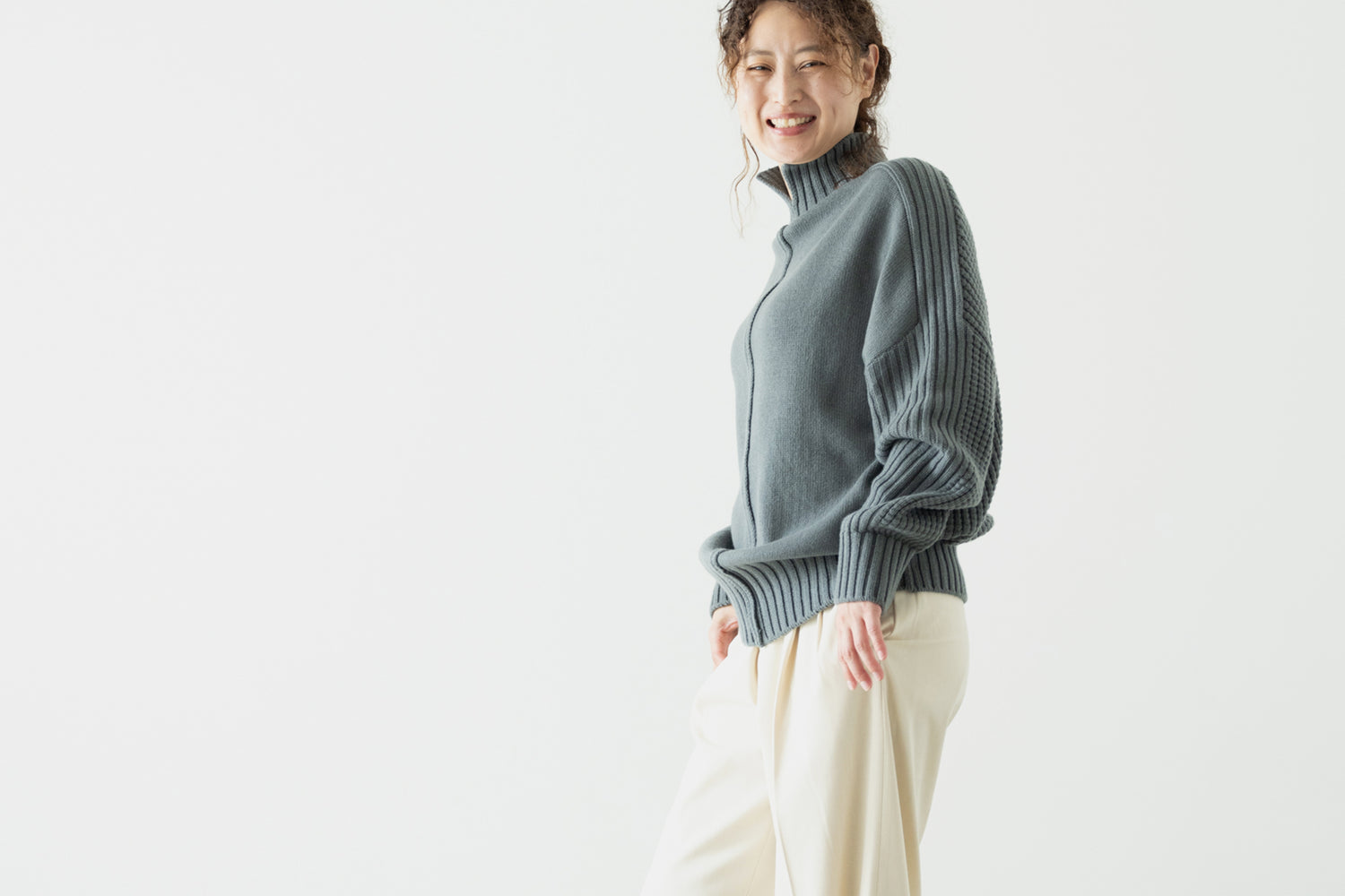 インナー、小物の使い方でスタイリングを楽しめる商品です。
