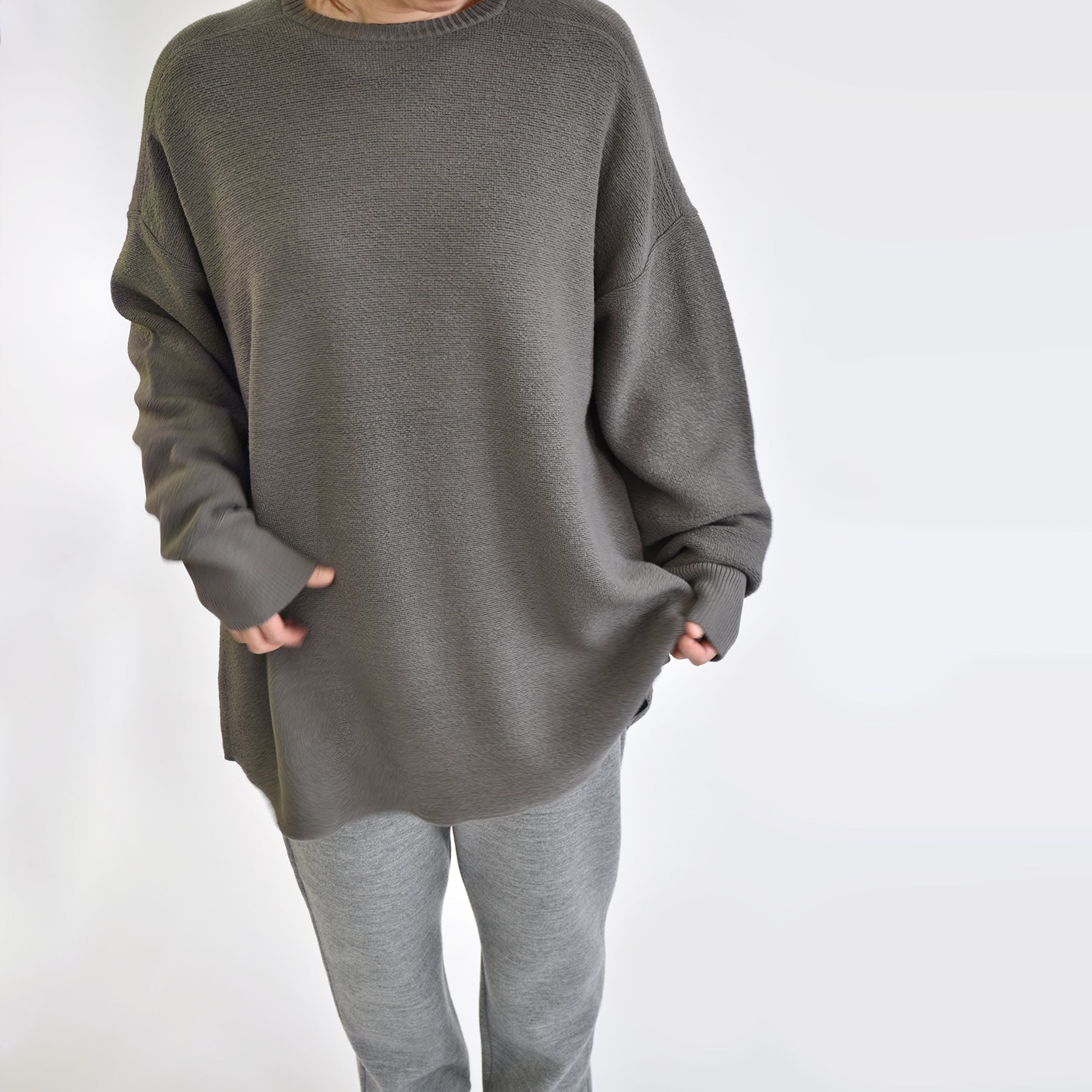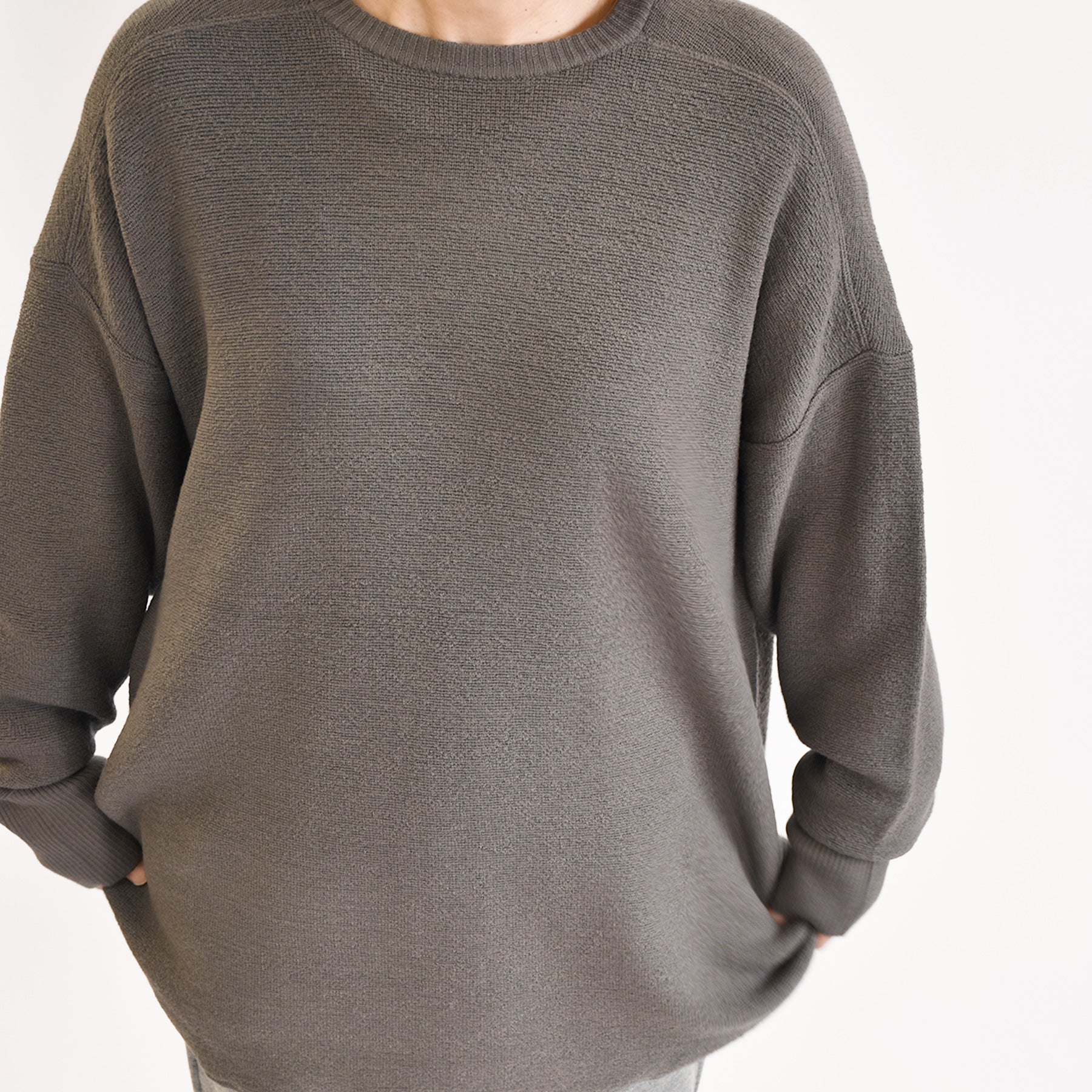 ニットソー仕立てで振りミシンステッチを施し、カジュアルでリラックス感のあるプルオーバーです。