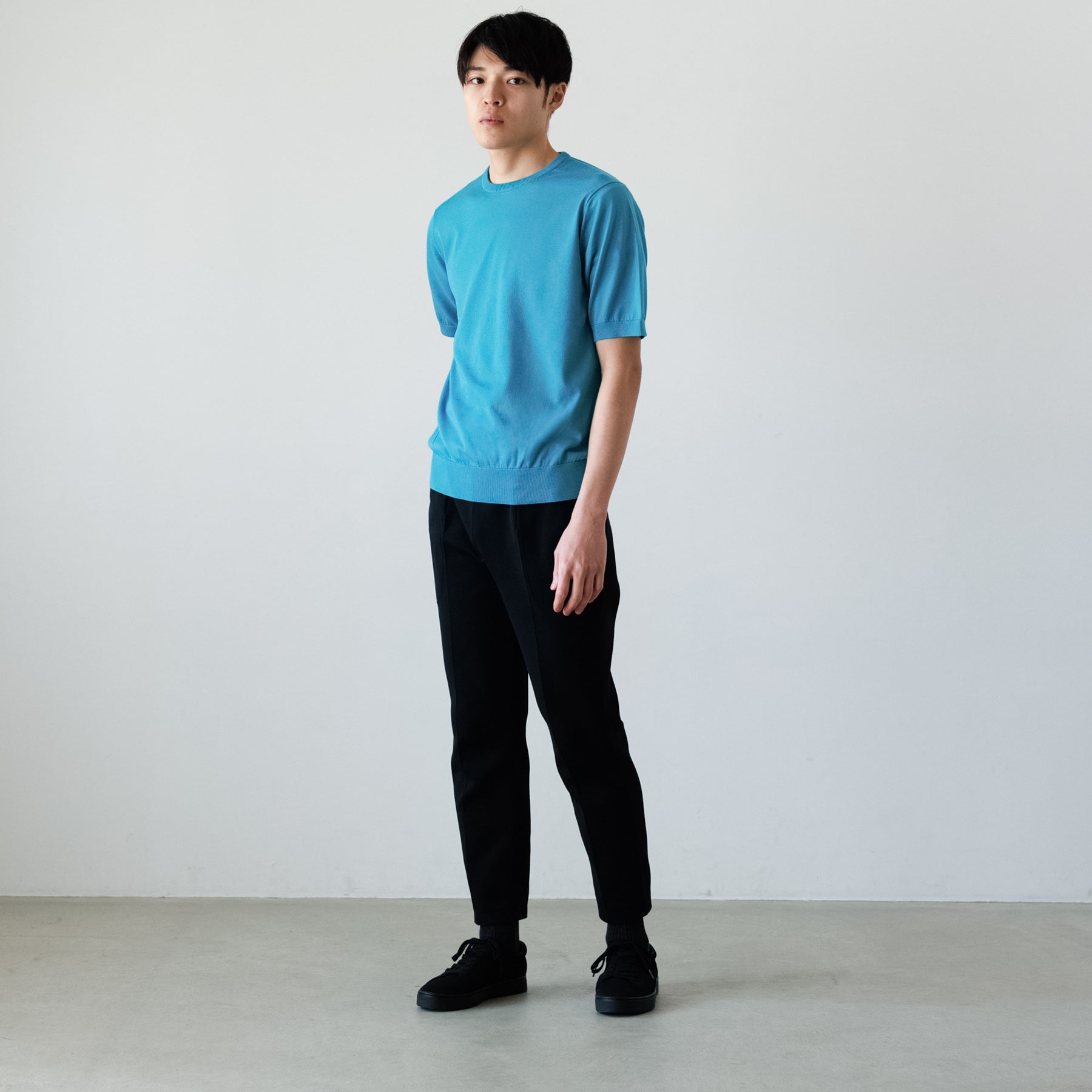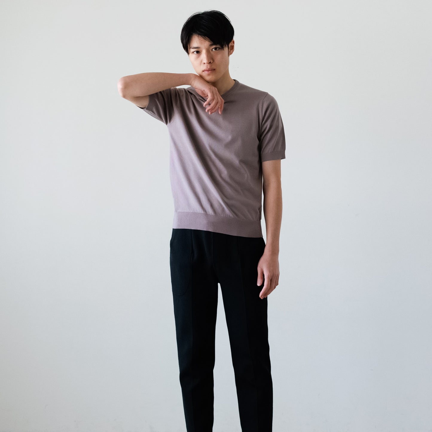 繊細で美しい編み目がGIZAコットン特有の光沢感を生み、なめらかな質感ながらハリコシのある上質な着心地が自慢の1枚です。