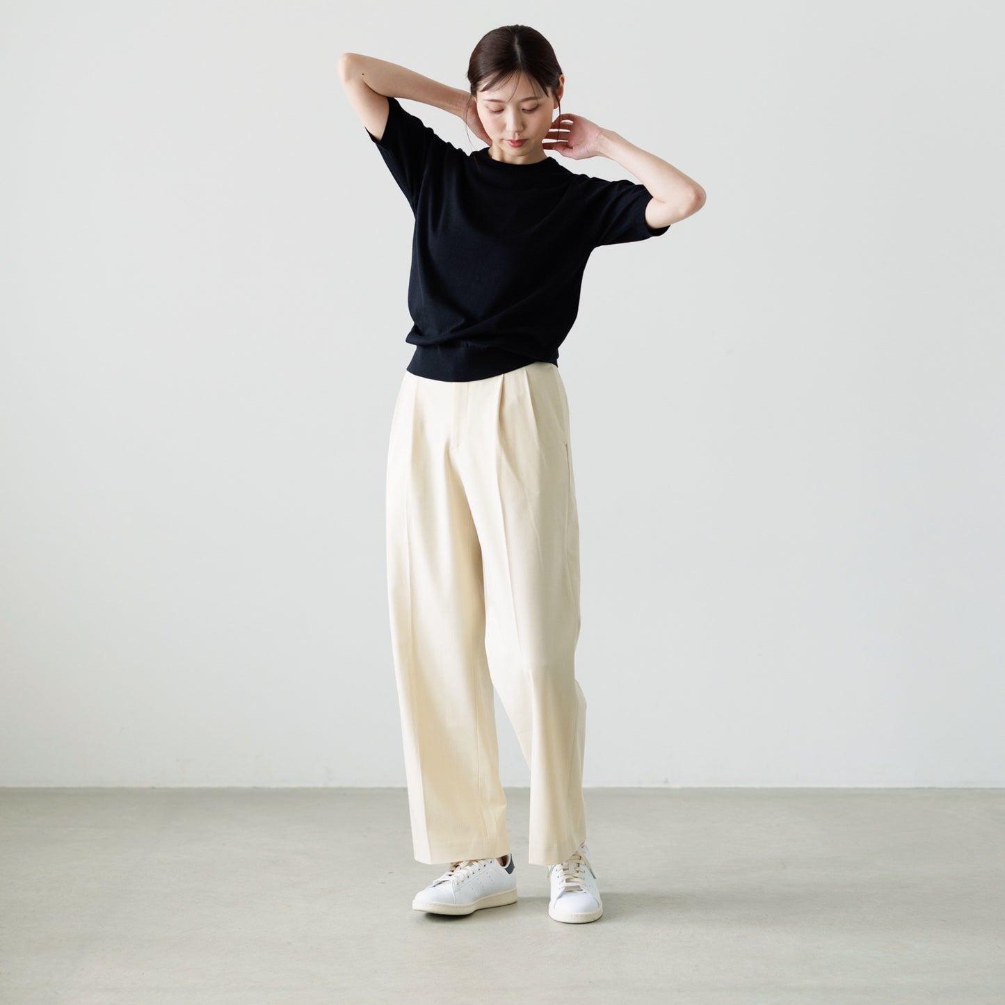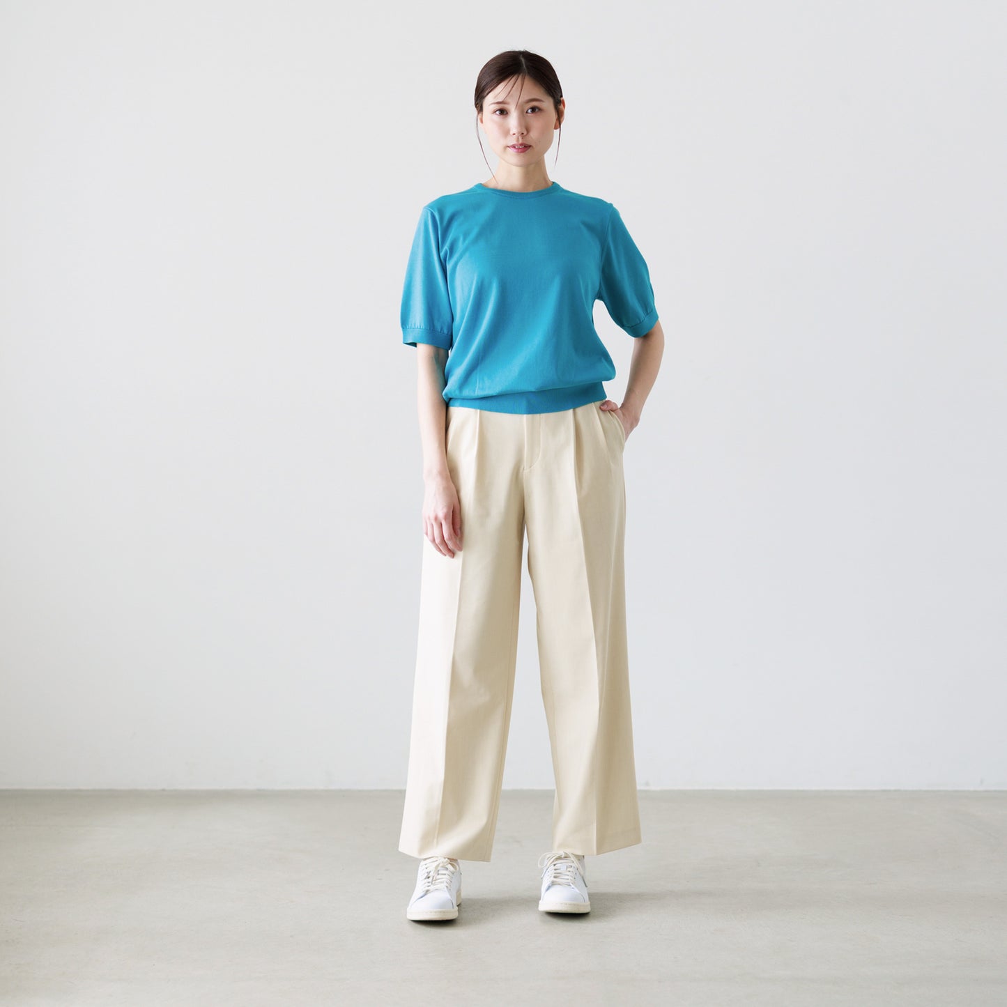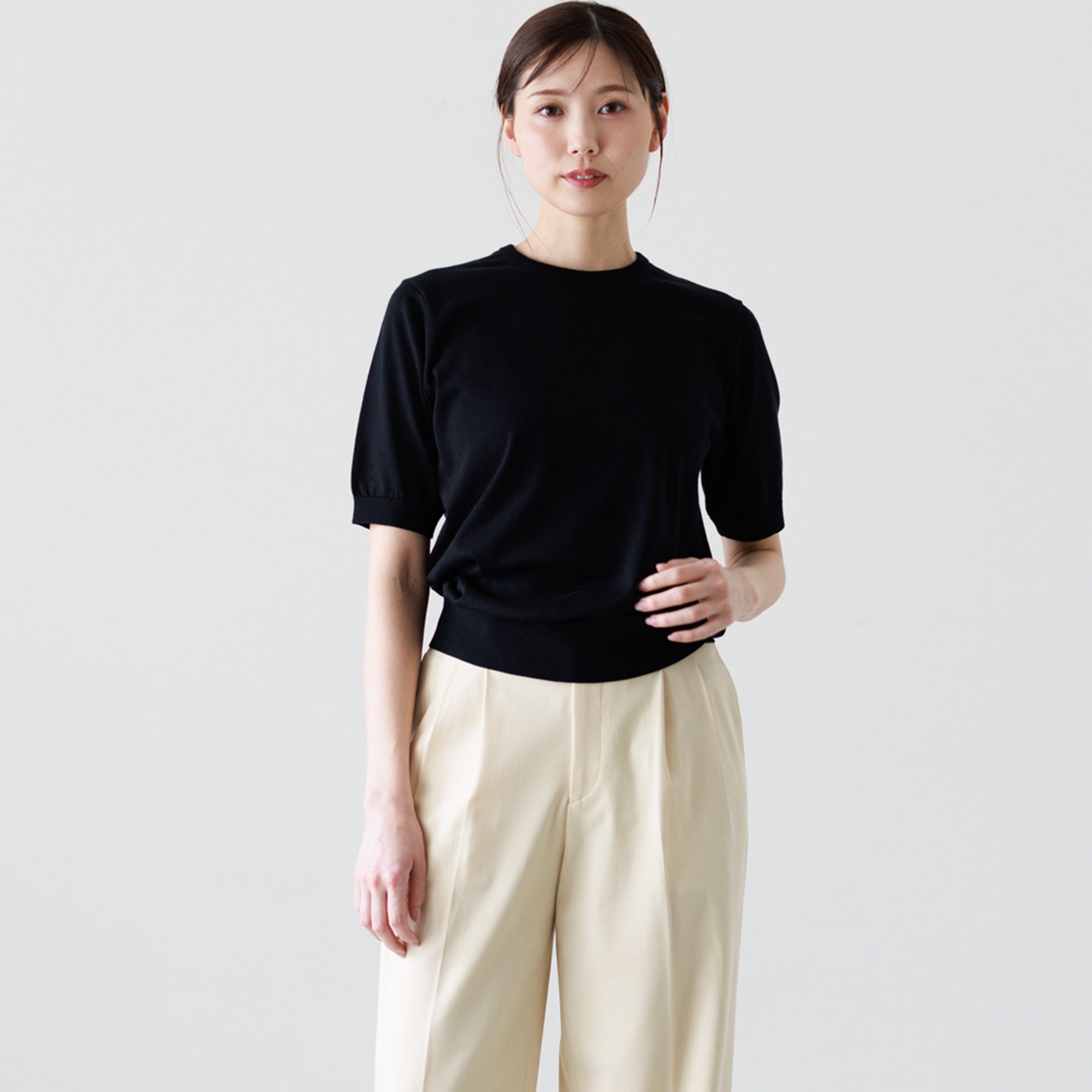 トレンドに左右されることなく、長い季節を通して着用できるクルーネックタイプは普段使いに1枚は持っておきたい定番アイテム。首回りは広すぎずスッキリと首元に沿うような開きになっているので上品な印象を与えてくれます。
