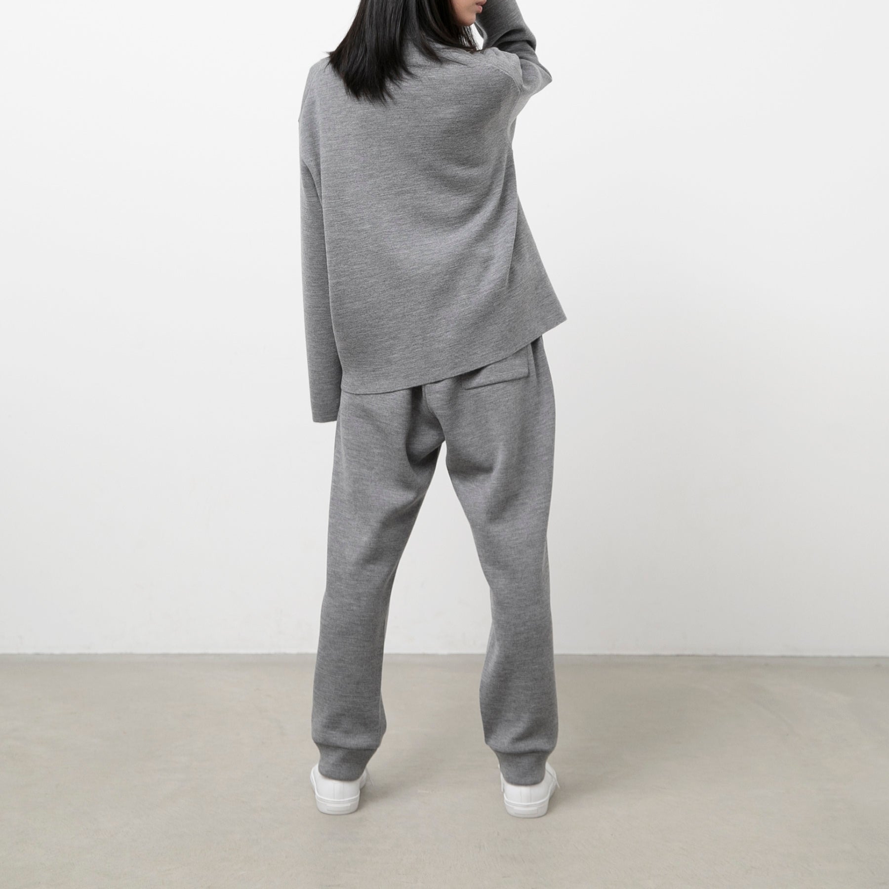 手洗い可能な防縮ウールのミラノリブパンツ。ニットパンツならではのリラクシーな履き心地でありながら、伸縮性が少なくダレにくい編み方を採用。
