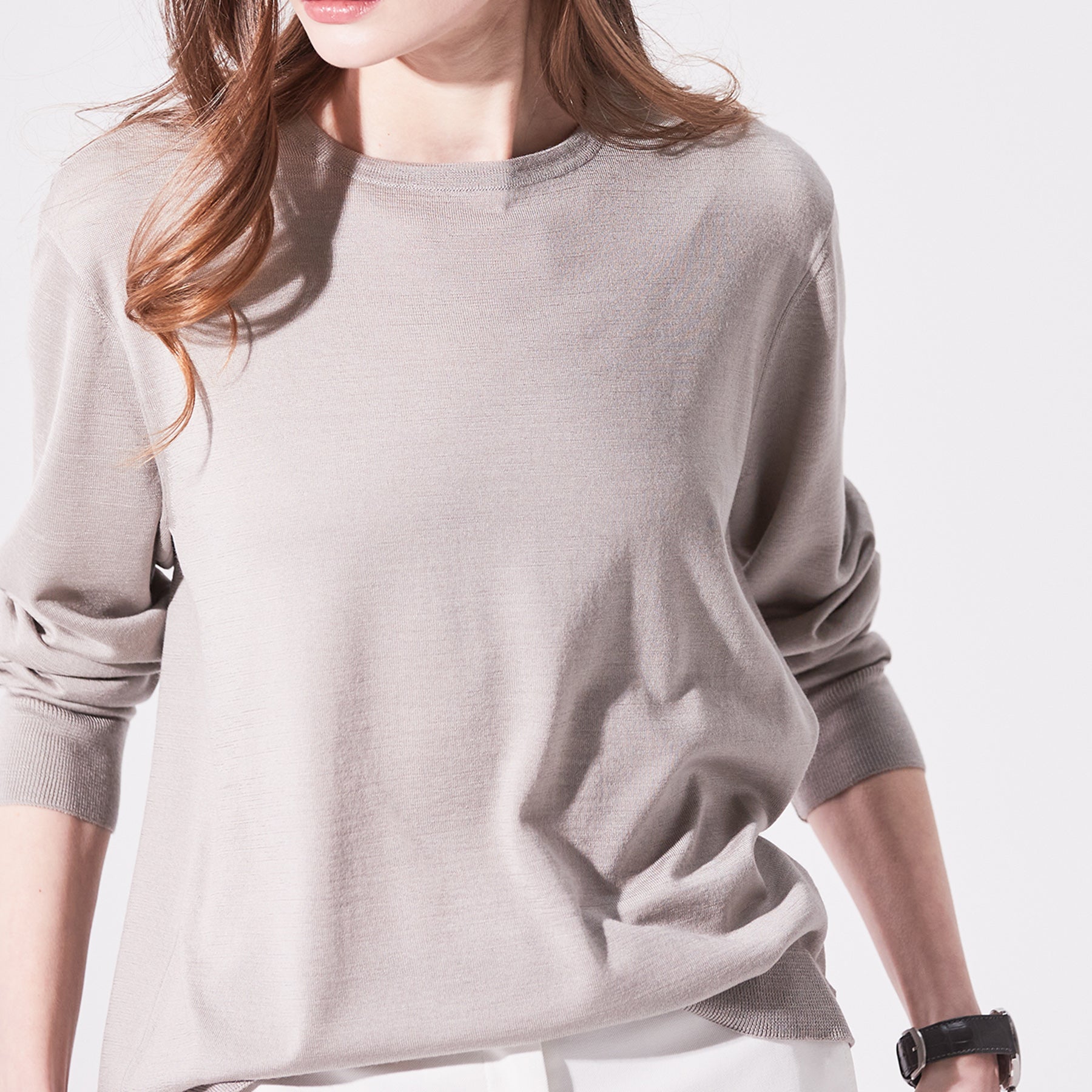 厳選された上質なカシミヤシルクの細番を使い、ライトウェイトに仕上げたottimo(オッティモ)シリーズ。日本には数台しかない非常に希少な機械で編み立てるエクストラファインゲージニットは、滑らかな質感で着る人の身体を優しく包み込み最高の着心地が約束された究極の1枚。センシュアルなライトウェイトはシーズンを通してマルチに活躍します。