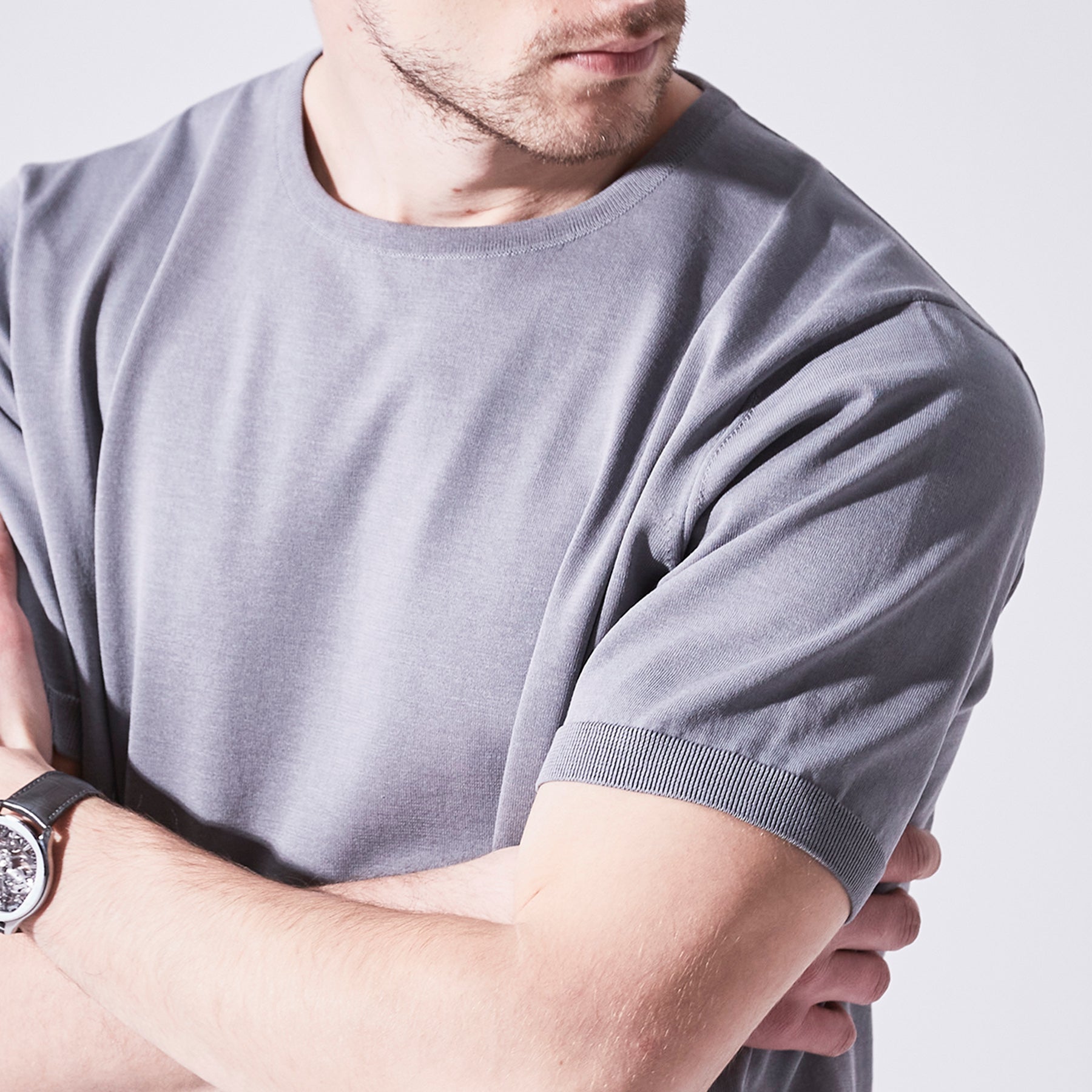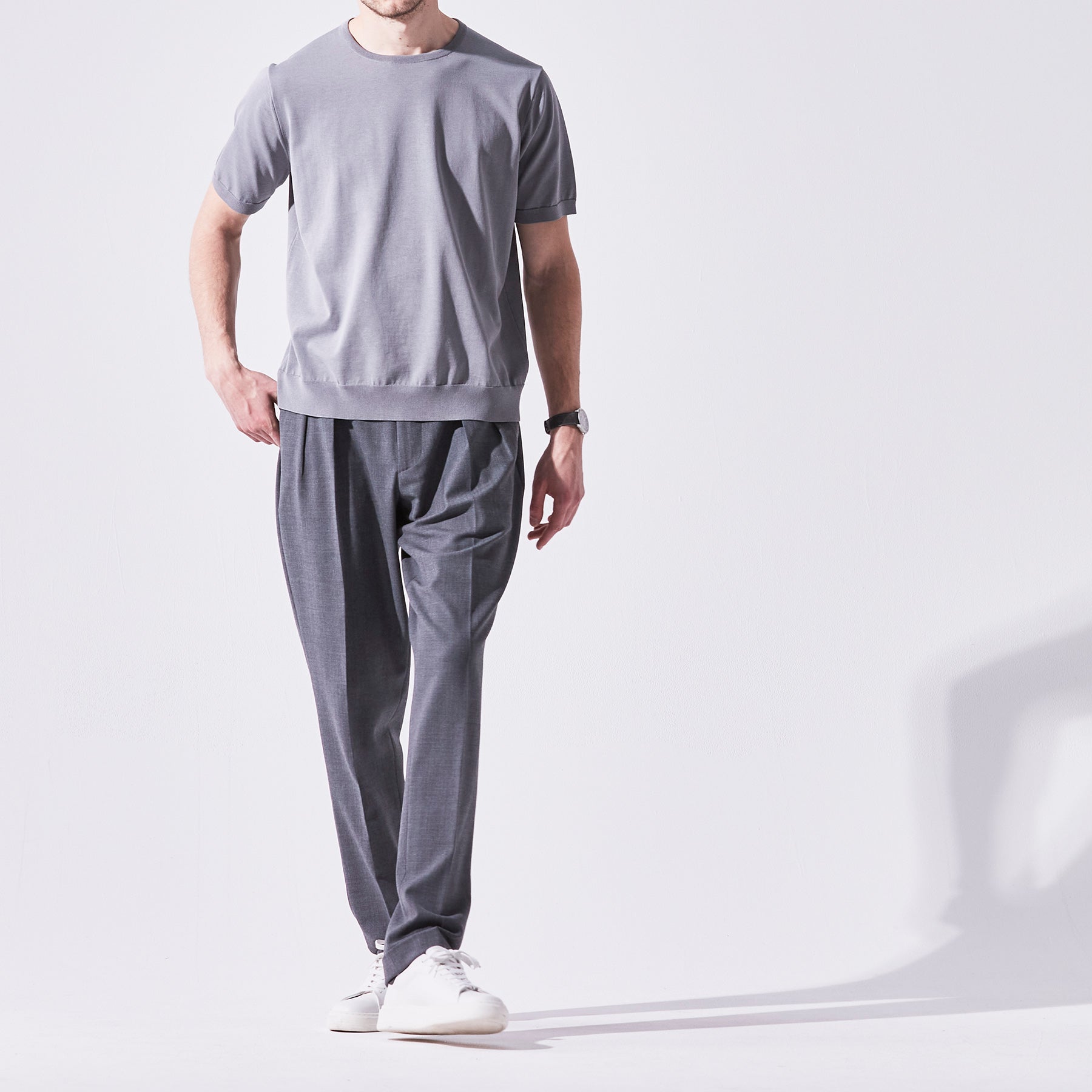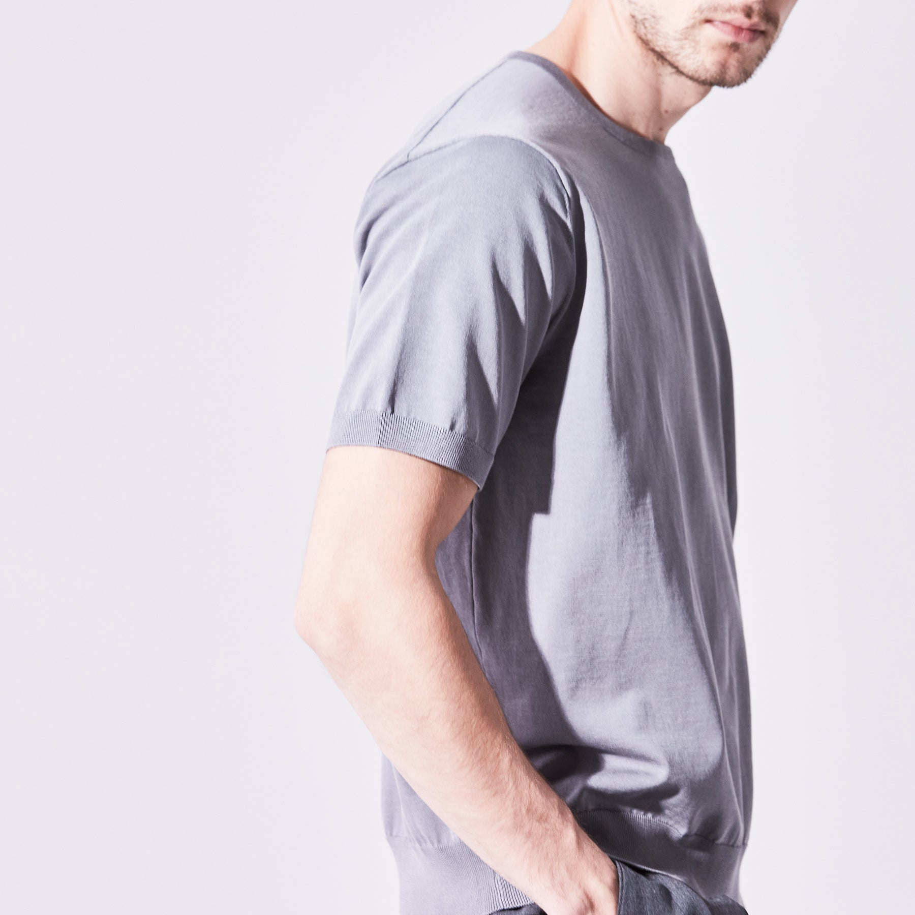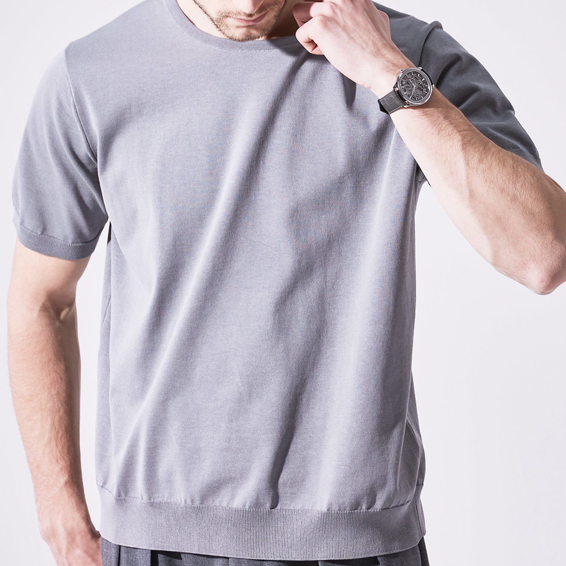 素材特有のドライで落ち感のある風合いを長く楽しんで頂けるよう、余計なデザインをなくし極めてシンプルに仕上げた半袖プルオーバー。Tシャツライクでありながら薄く仕上げた裾リブがカジュアルさを軽減。1枚でももちろん、品よく見せたいジャケットスタイリングにも対応する理想のワードローブです。