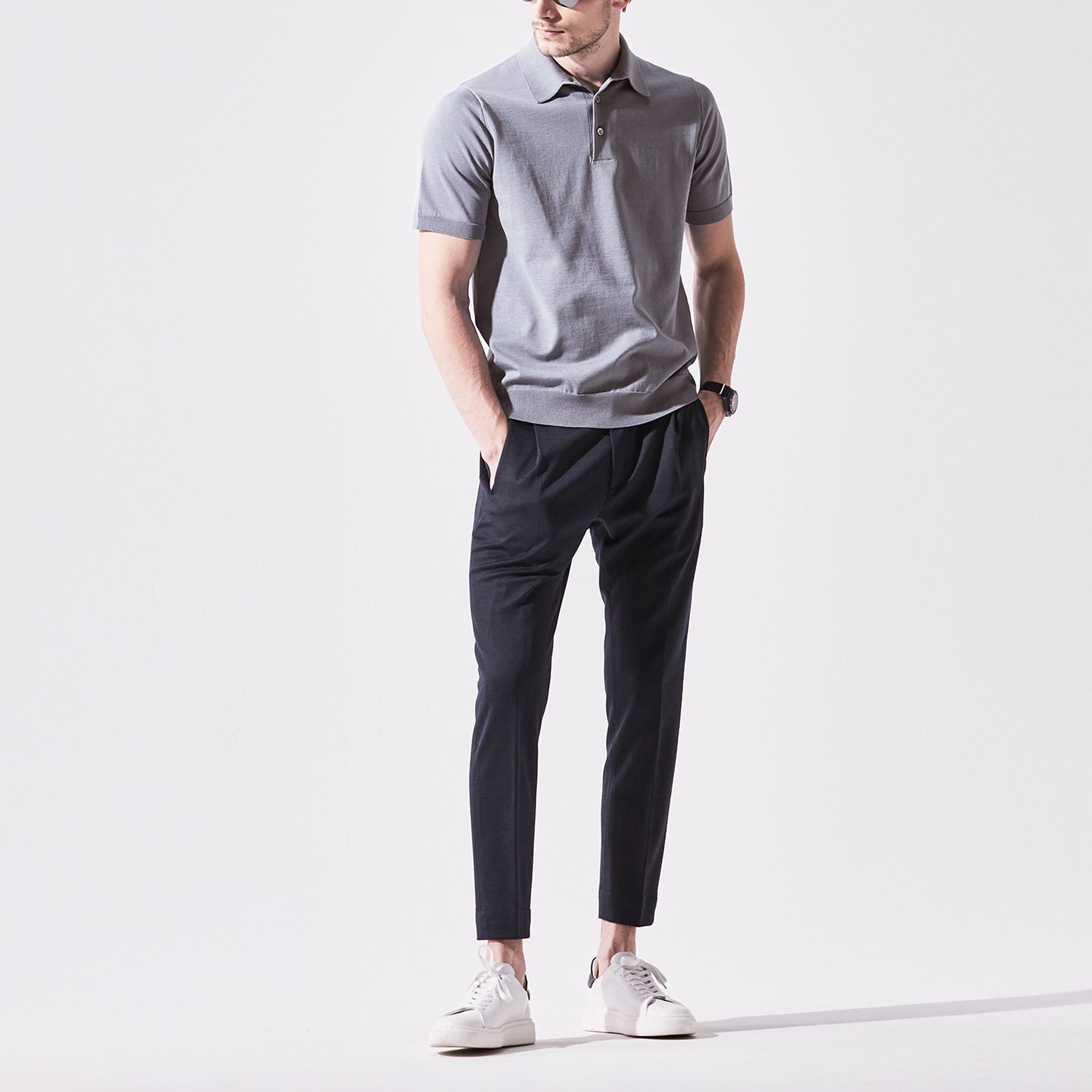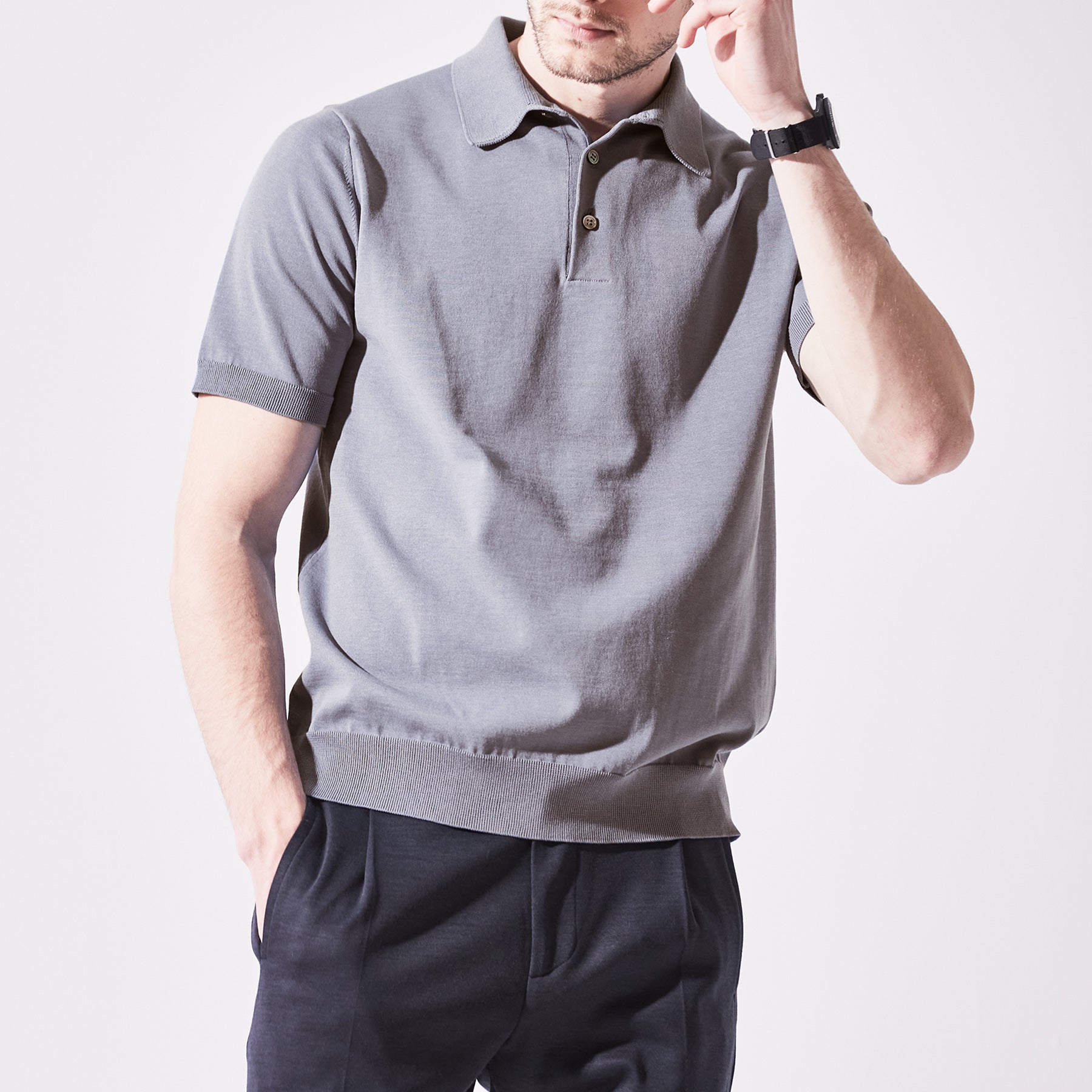 春夏の定番アイテムとも言える半袖ポロ。ニットならダボつかず身体に心地よく馴染むのでスッキリとしたエレガントさをキープ出来ます。素材の持つしなやかでドライなタッチは汗をかく季節でも心地良く着られデイリーウェアとしても最適。素材の良さがぐっと引き立つエレガントな表情で、大人の品を感じさせる一枚です。